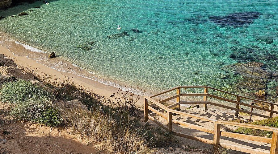 Ondanks de naam is het niet moeilijk te vinden als je weet waar je moet zoeken. Omgeven door rotsen en lage kliffen biedt het een omgeving die beschermd is tegen de wind en een kristalheldere zee die perfect is om in te zwemmen of snorkelen. De baai heeft zijn ongerepte essentie behouden, met een kleine ecologische strandbar die gebouwd is met respect voor het milieu en een ontspannen sfeer, waar je authenticiteit kunt uitademen.